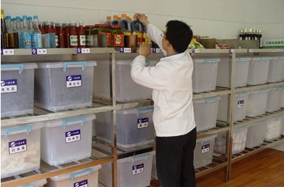 卫生管理是餐饮行业管理项目中的重中之重,团体餐饮更是如此。近几年来,许多企业员工饭堂的卫生管理由于上游原料供应采购控制不严和包外再包、新管理模式引进等原因日渐下滑,各种媒体上经常可见集体食物中毒事件的报导,让人十分担忧,和源隆决不会一味贪图便宜而购买不新鲜和腐败变质的原材料。同时,我们在食品加工过程中,严格遵守有关食品卫生的操作规范,就连仓库也是统一标准化管理(见附图),从而保证制作出的食品完全符合卫生要求。